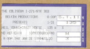 Ticket stub from the Neil Young & Crazy Horse concert at the Cleveland Coliseum on January 31,